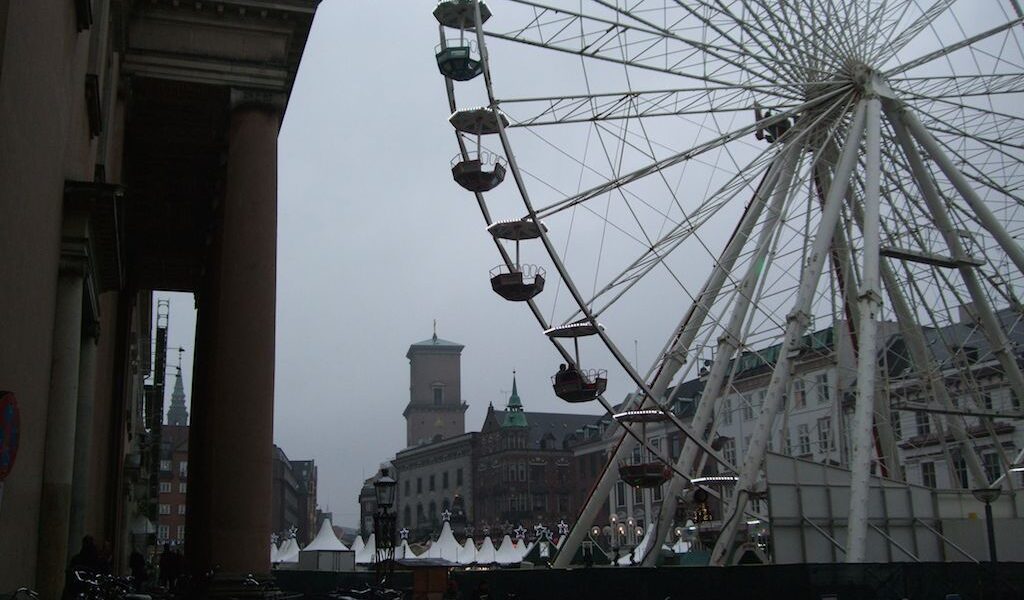 Foran domhuset er der i år i anledning af julehandlen opsat et overdimensioneret pariserhjul og hele Nytorv er besat af grimme præfabrikerede salgsboder med plastic-istapper hængende ned fra taget.