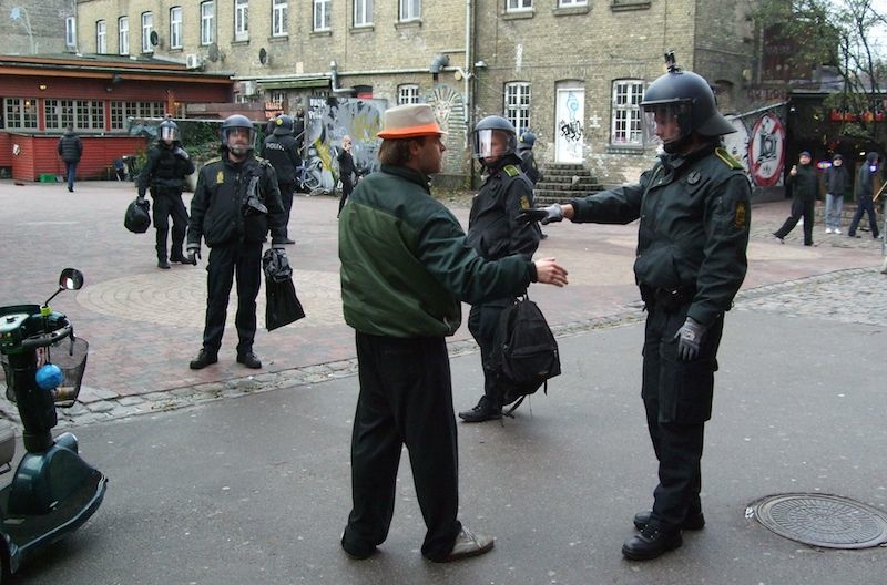Efter mindre end tre minutter forlod betjentene Christiania i fredeligt løb mod en af fristadens indgange i Prinsessegade.