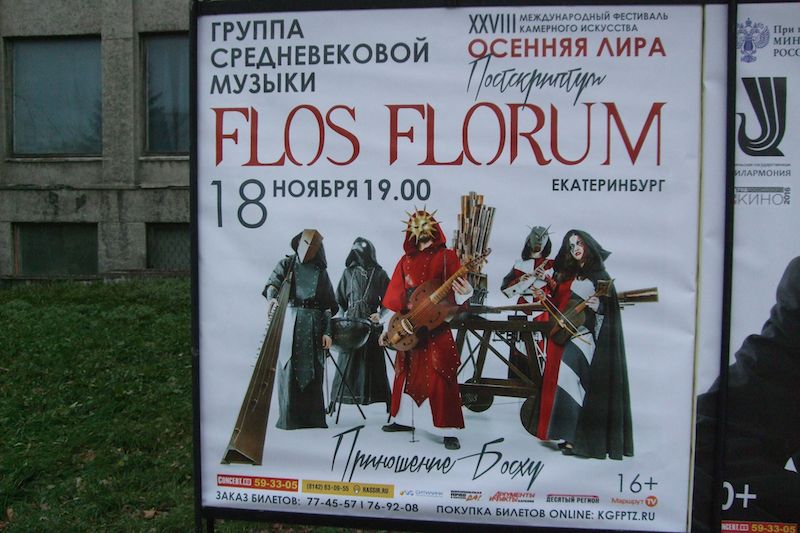 Foto: Plakat ved Den Filharmoniske Koncertsal – Flos Florum spiller den 18. november i år